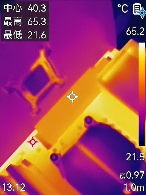 而散热片表面的温度仅略超过40度,温度控制非常好。